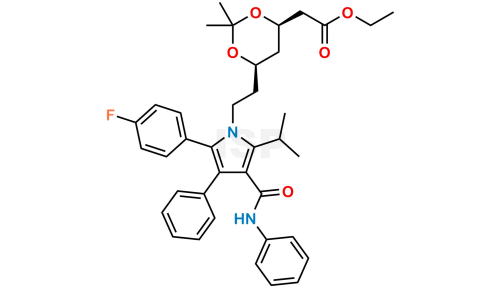 Atorvastatin Impurity 11 is chemically ethyl 2-((4R,6R)-6-(2-(2-(4-fluorophenyl)-5-isopropyl-3-phenyl-4-(phenylcarbamoyl)-1H-pyrrol-1-yl)ethyl)-2,2-dimethyl-1,3-dioxan-4-yl)acetate.