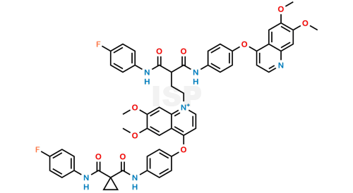 Cabozantinib Impurity 22 is chemically 1-(4-((4-((6,7-Dimethoxyquinolin-4-yl)oxy)phenyl)amino)-3-((4-fluorophenyl)carbamoyl)-4-oxobutyl)-4-(4-(1-((4-fluorophenyl)carbamoyl)cyclopropane-1-carboxamido)phenoxy)-6,7-dimethoxyquinolin-1-ium.