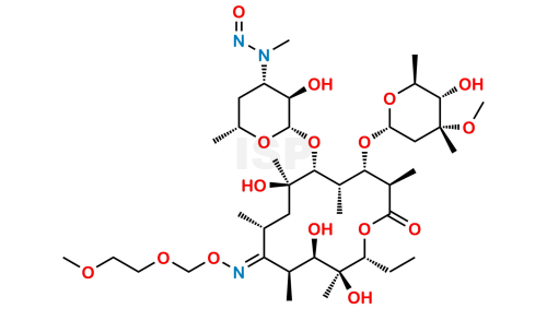 N-Nitroso -N-Demethyl Roxithromycin is chemically N-((2S,3R,4S,6R)-2-(((3R,4S,5S,6R,7R,9R,11S,12R,13S,14R,E)-14-ethyl-7,12,13-trihydroxy-4-(((2R,4R,5S,6S)-5-hydroxy-4-methoxy-4,6-dimethyltetrahydro-2H-pyran-2-yl)oxy)-10-(((2-methoxyethoxy)methoxy)imino)-3,5,7,9,11,13-hexamethyl-2-oxooxacyclotetradecan-6-yl)oxy)-3-hydroxy-6-methyltetrahydro-2H-pyran-4-yl)-N-methylnitrous amide.